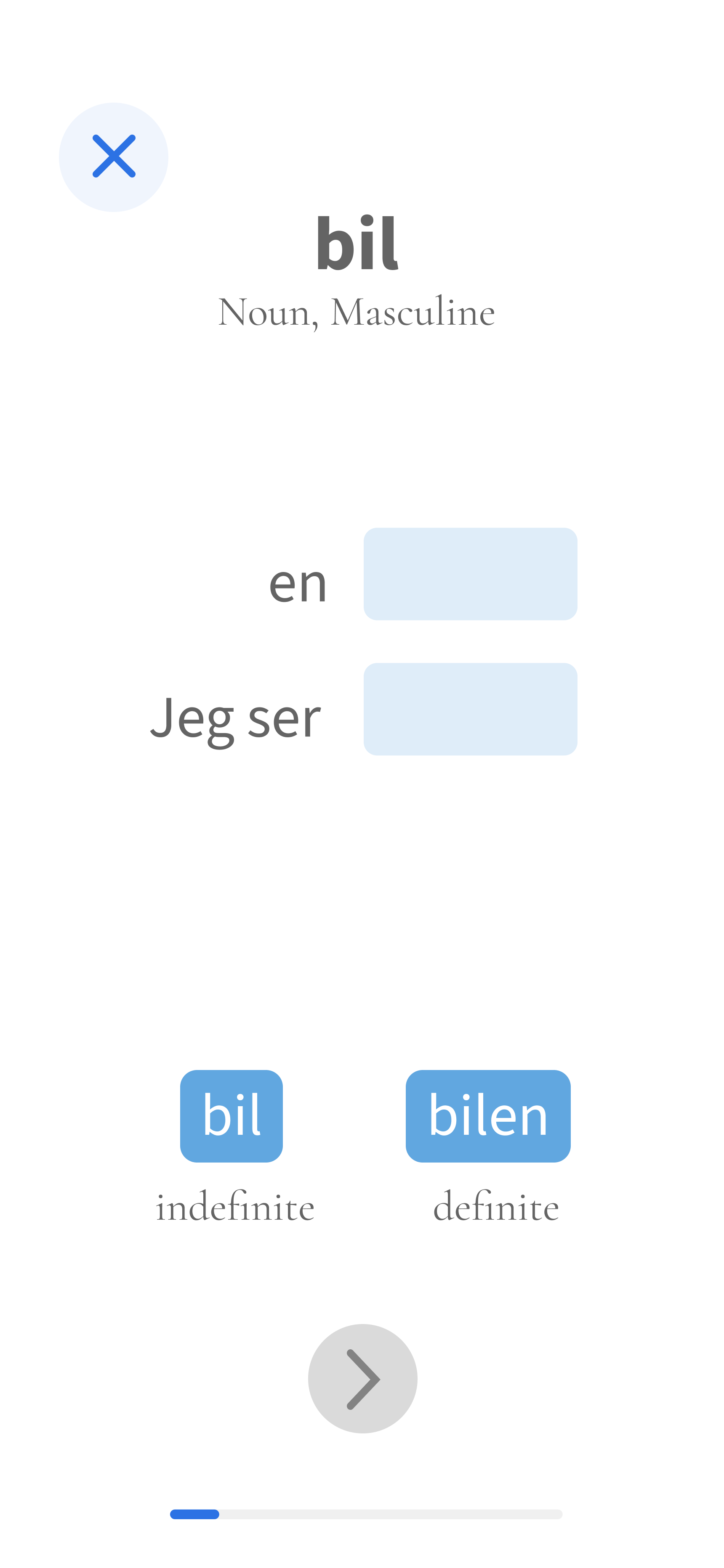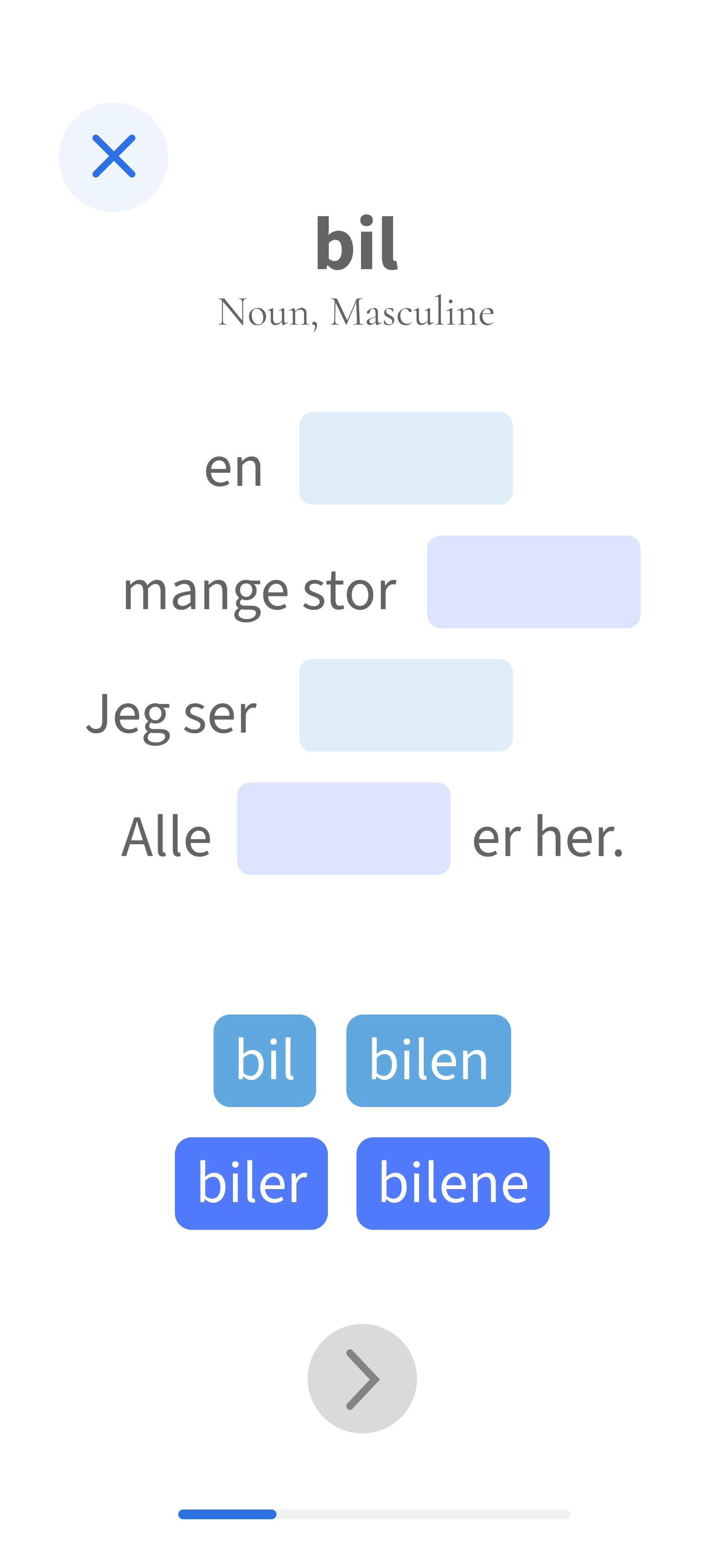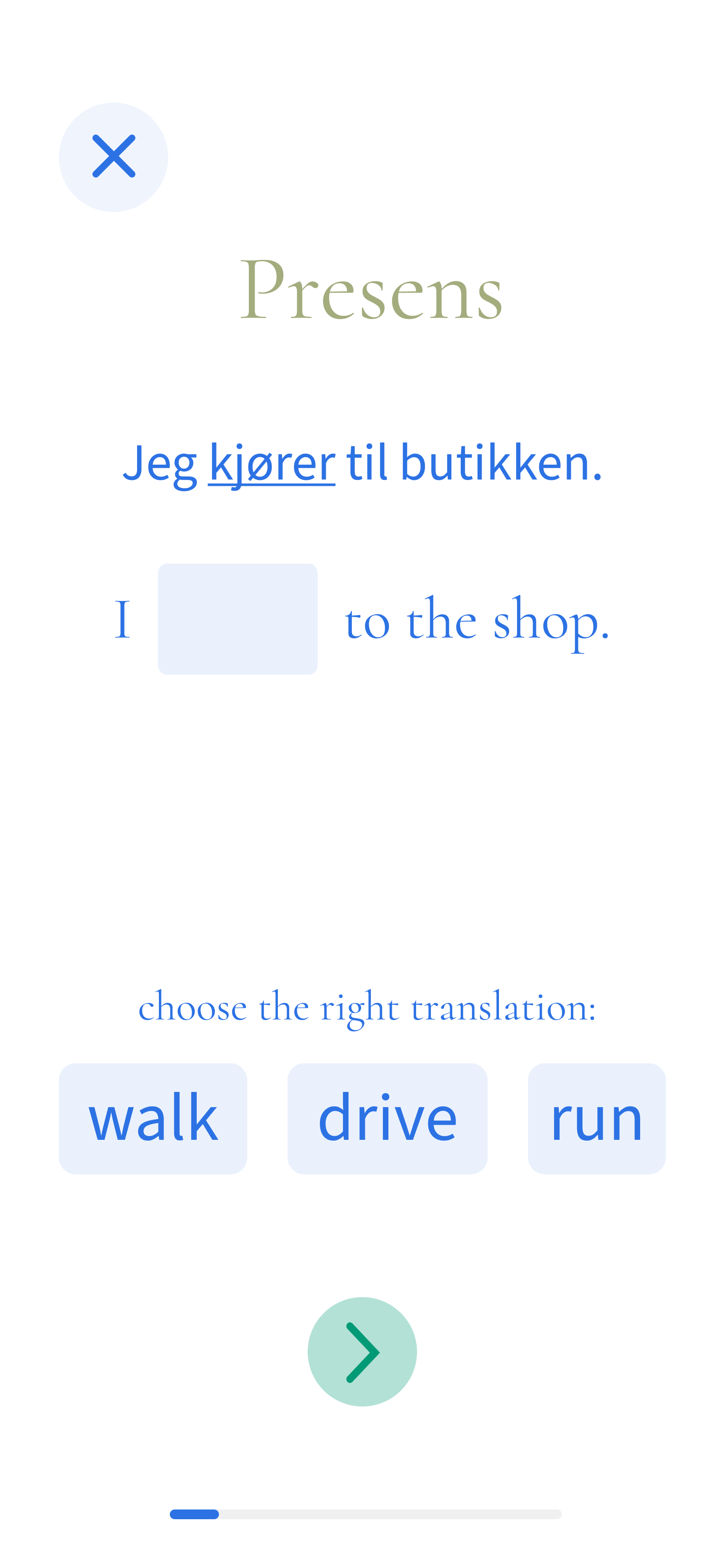 Here, I create exercises that gradually help the learner remember the word 'kjører.'