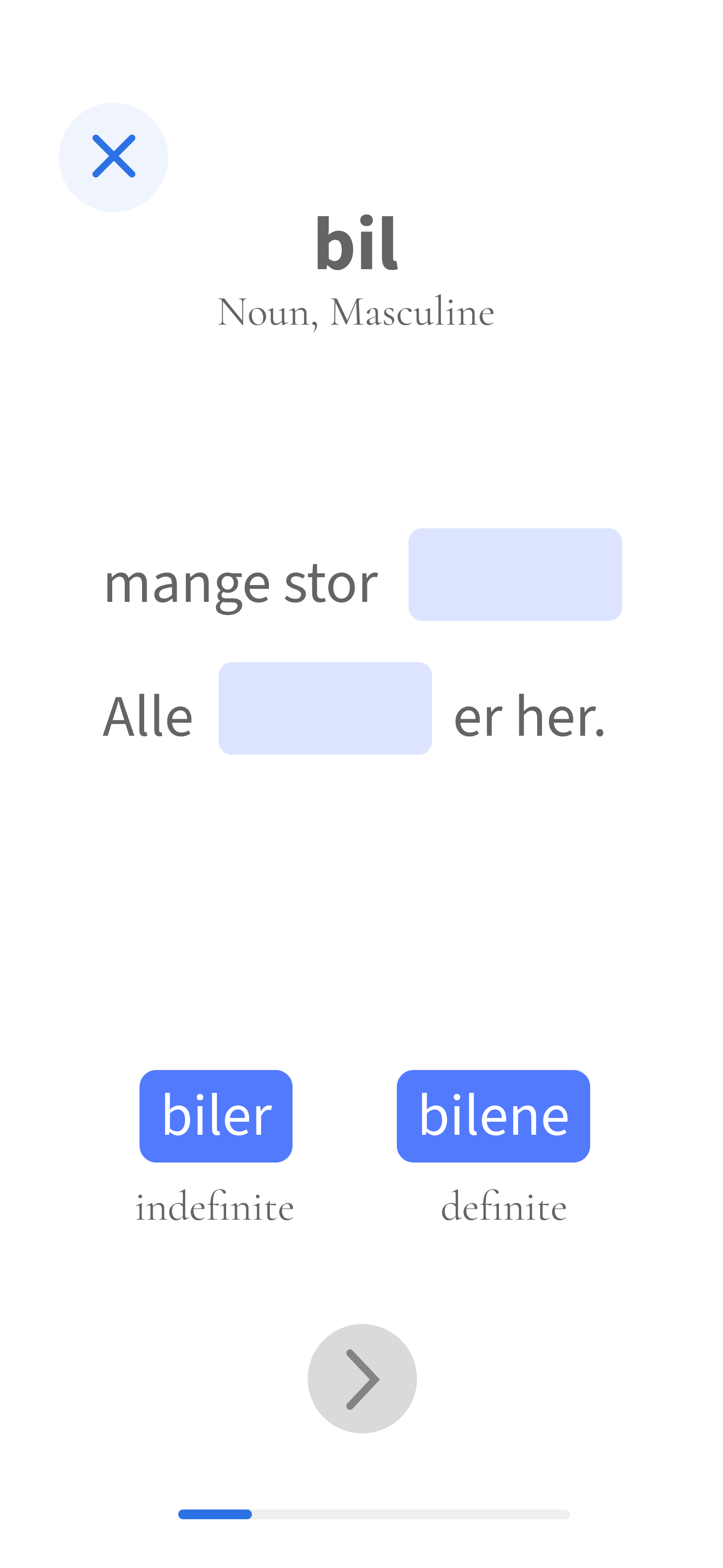 Sentence exercises increase as the user progresses through each unit, allowing them to practice with newly learned vocabulary.